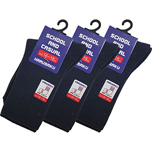 (ハルサク) HARUSAKU 3足組 児童 園児 スクールソックス 子供 用 無地 紺 白 靴下 セット 13 ~ 21cm 男の子 女の子 (16-18cm, 紺)
