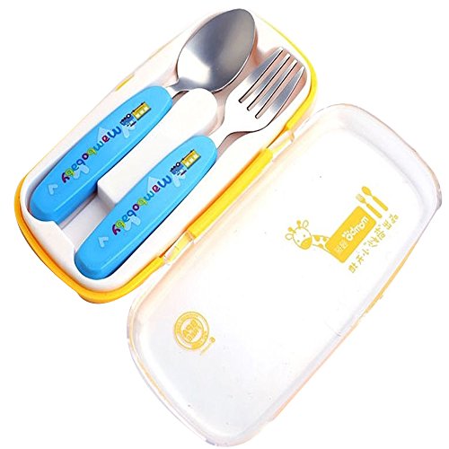 HBF ベビー食器 フォーク&スプーン セット ステンレス製 やけど防止 梱包ケース付 安全 安心 キッズ 男の子 女の子 子供 (ブルー)