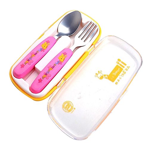 HBF ベビー食器 フォーク&スプーン セット ステンレス製 やけど防止 収納ケース付 安全 安心 キッズ 男の子 女の子 子供 ピング