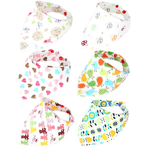 HBF 6枚セット ベビー スタイ ビブ 三角 バンダナ型 2層タイプ 綿100% 柔らか よだれかけ スナップ サイズ調整可能 41cmx29cmx29cm