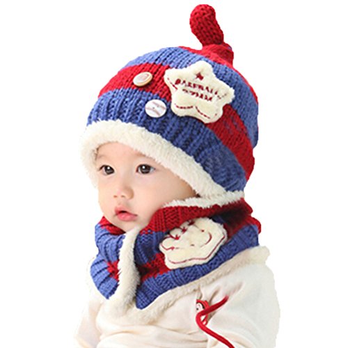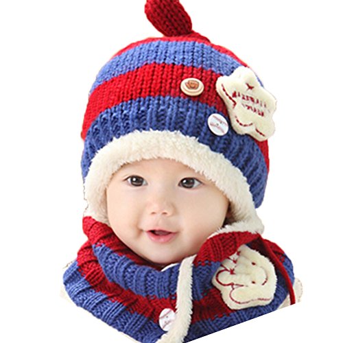 HBF ニット帽 マフラー セット ベビー キッズ 子供 赤ちゃん 用 防寒 かわいい ニット 帽子 キャップ ハット 誕生日 出産祝い チェリーピンク+ブルー