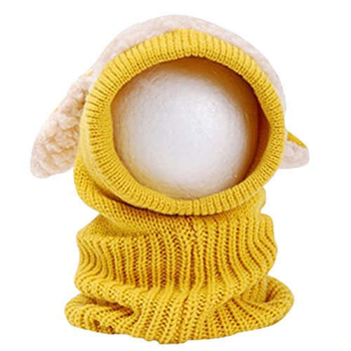 HBF かわいい ニット帽 スヌード ウサ耳 防寒 赤ちゃん ベビー キッズ 帽子 キャップ 秋 冬 イエロー