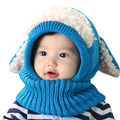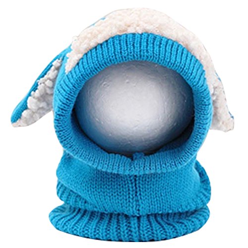 HBF かわいい ニット帽 スヌード ウサ耳 防寒 赤ちゃん ベビー キッズ 帽子 キャップ 秋 冬 ブルー