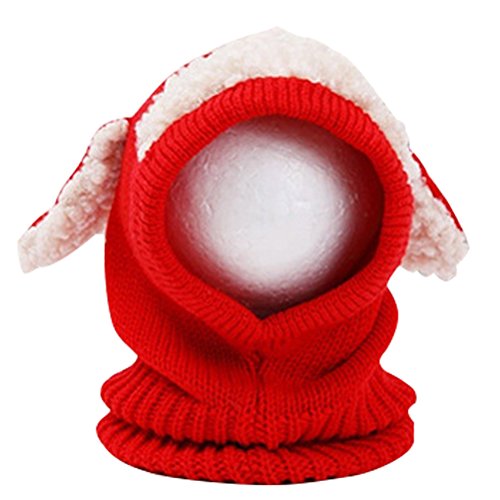 HBF かわいい ニット帽 スヌード ウサ耳 防寒 赤ちゃん ベビー キッズ 帽子 キャップ 秋 冬 レッド