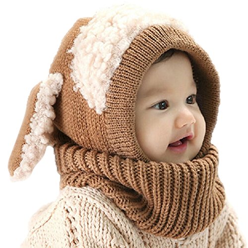 HBF かわいい ニット帽 スヌード ウサ耳 防寒 赤ちゃん ベビー キッズ 帽子 キャップ 秋 冬 ブラウン