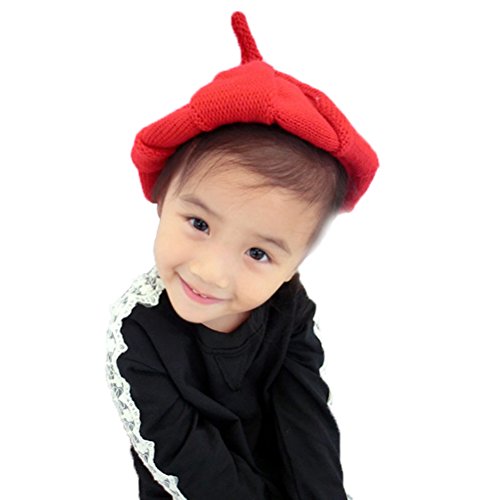 HBF 超かわいい とんがり ニット帽 ねじり帽子 どんぐり 加厚 プラッシュ 防寒 柔らかい ベビー 子ども 赤ちゃん キッズ 女の子 男の子 秋 冬 レッド
