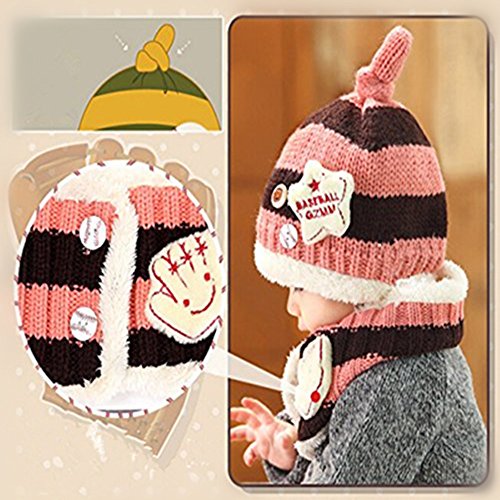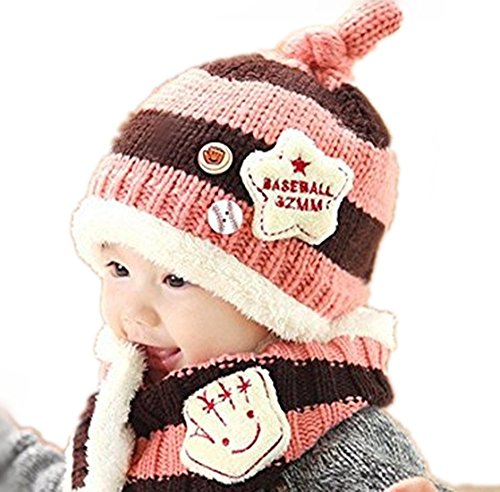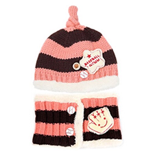 HBF ニット帽 マフラー セット ベビー キッズ 子供 赤ちゃん 用 防寒 かわいい ニット 帽子 キャップ ハット 誕生日 出産祝い ピンク+ブラウン