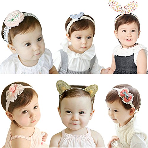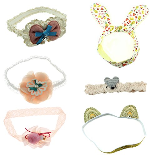 HBF 子供 ヘアアクセサリー ヘッドバンド 髪飾り 髪留め 花 ウサギ耳 カチューシャ かわいい キッズ 赤ちゃん ベビー 出産祝い 誕生日 プレゼント お宮参り 6点セット