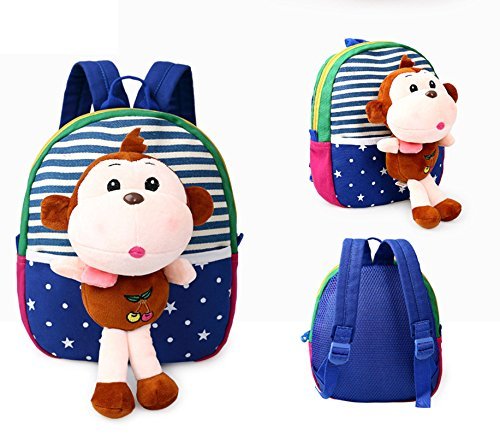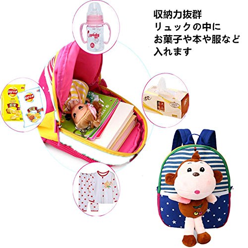 HBF ベビーリュック デイパック 帆布 軽量 蒸れ防止 可愛い メッシュ バックパック リュックサック ランドセル 子供 キッズ 男の子 女の子 幼稚園 保育園 お祝い ブルー+さる
