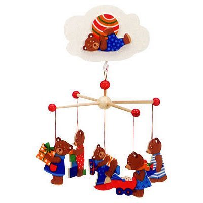 ネジを回すと、やさしい音色と一緒にくまさんたちが回りだします。 やさしい音色は子守唄のように赤ちゃんを包んでくれるでしょう。