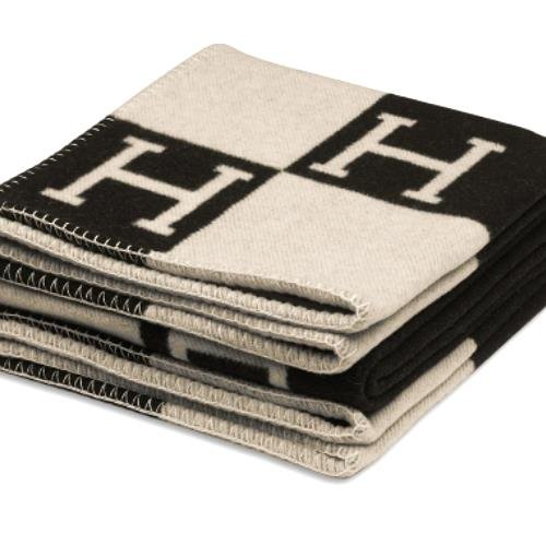 HERMES エルメス ブランケット Avalonアヴァロン カシミア ウール ブラック H100186M 55 ビーチ おくるみ [並行輸入品]