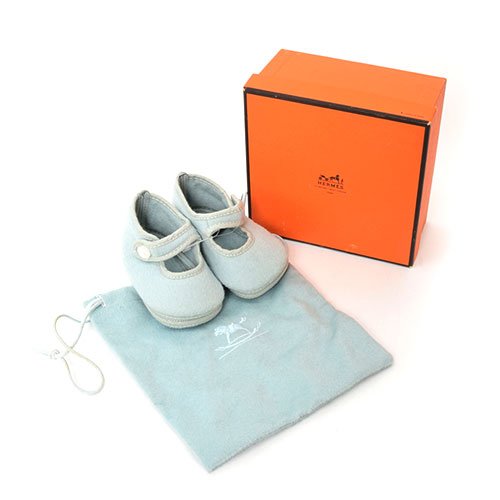 (エルメス)HERMES 刺繍入り ベビーシューズ ミントグリーン [中古]