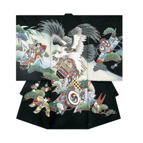産着 初着 祝い着 男の子 着物 /B1黒・鷹鎧