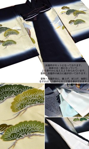 着物・長襦袢共に、腰上げ、肩上げ、袖閉じをすれば、三歳の七五三で着る事ができます。
