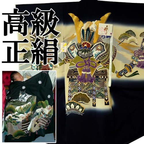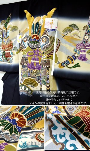産着 初着 祝い着 男の子 着物 /S10黒・兜富士山