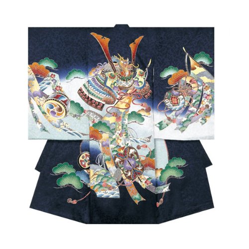 産着 初着 祝い着 男の子 着物 /B7紺・兜軍配刺繍