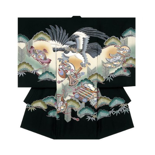 産着 初着 祝い着 男の子 着物/B15黒・鷹小槌刺繍