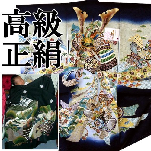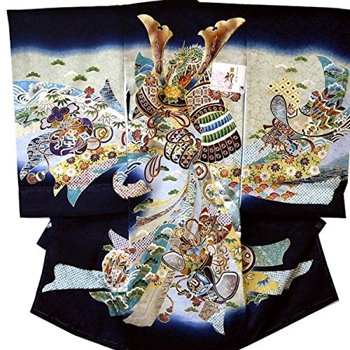 産着 初着 祝い着 男の子 着物 /B55黒・兜