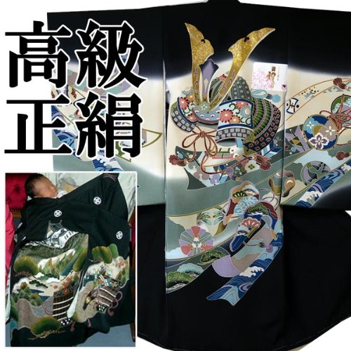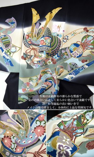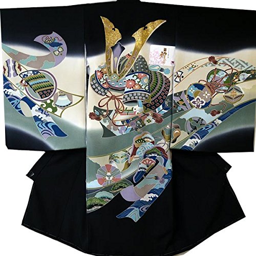 産着 初着 祝い着 男の子 着物 /B57黒・兜