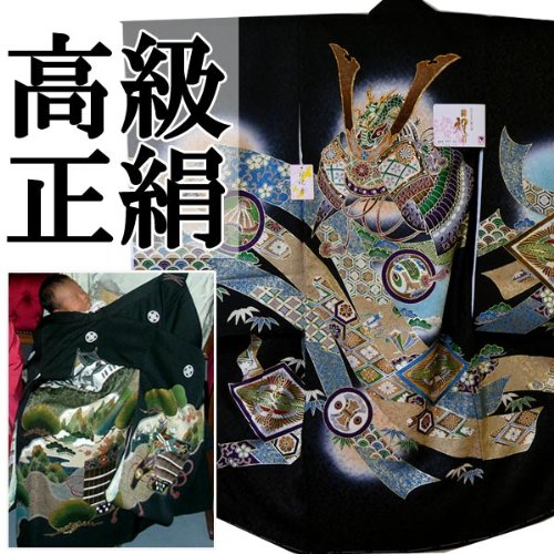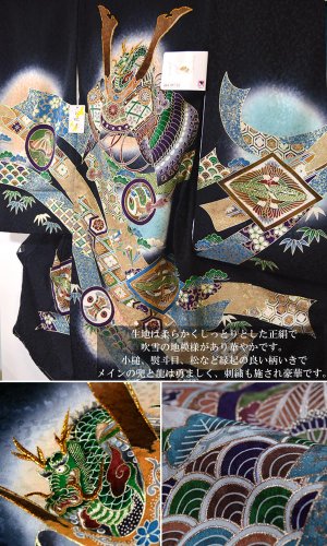 産着 初着 祝い着 男の子 着物 /S7黒・兜