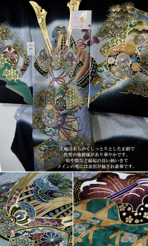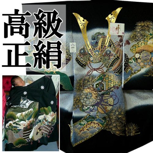 産着 初着 祝い着 男の子 着物 /S6黒・兜