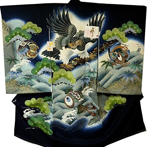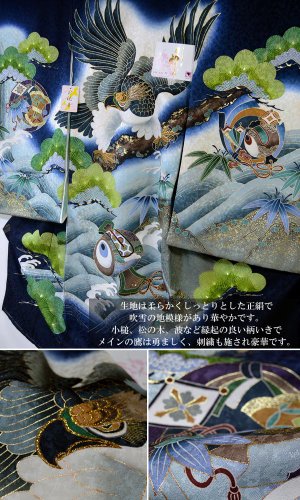 産着 初着 祝い着 男の子 着物/S3紺・鷹