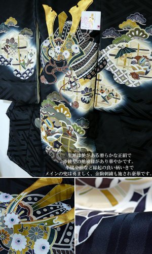 産着 初着 祝い着 男の子 着物 /S8黒・兜