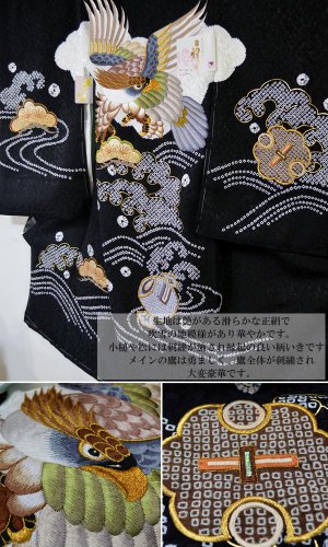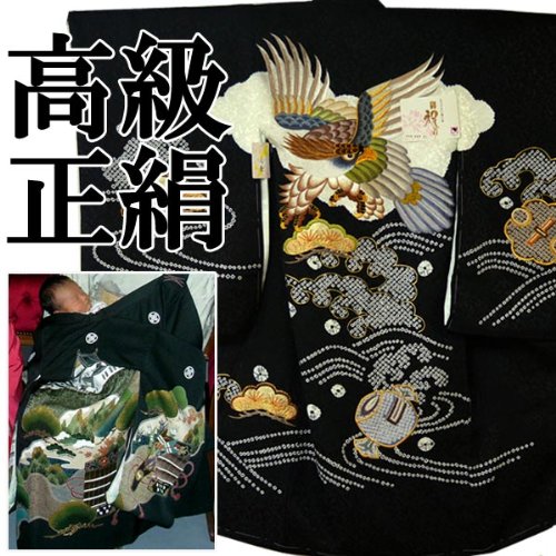 産着 初着 祝い着 男の子 着物 /S9黒・鷹