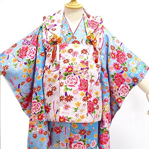 七五三着物セット3歳被布三歳 被布セット 7タイプ/17(バラ鈴・白水色)