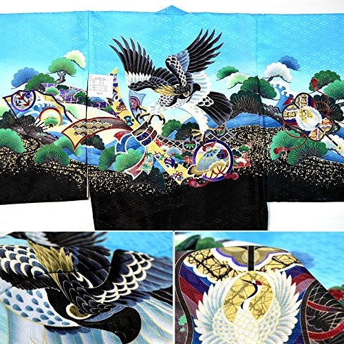 七五三 3歳 3才 男児 トータル13点フルセット 男の子 着物 (ミニ5歳) 紋付羽織袴 紋付袴 8タイプ/3(鷹のしめ・水色A-3)