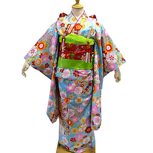 - ◆サイズ: 着物/身丈135cm 袖丈76cm 裄57cm 結び帯:大寸 草履:21cm 適合身長105cm~135cm 裄丈が合えば、丈直しは必要ないです。 身丈は、おはしょりにて十分調節できます。