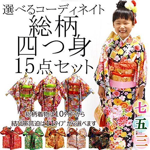 - ◆内容: 着物(四つ身)・重ね衿・長襦袢・御祝帯・草履・バッグ・丸ぐけ・はこせこ・扇子・びらかんざし・帯揚げ・しごき・足袋・腰紐2本