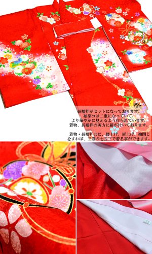 着物・長襦袢共に、腰上げ、肩上げ、袖閉じをすれば、三歳の七五三で着る事ができます。