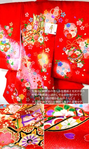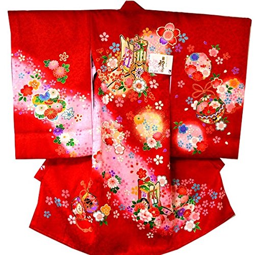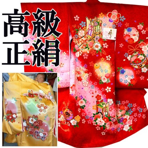 産着 初着 祝い着 女の子 着物 /B71赤・御所車