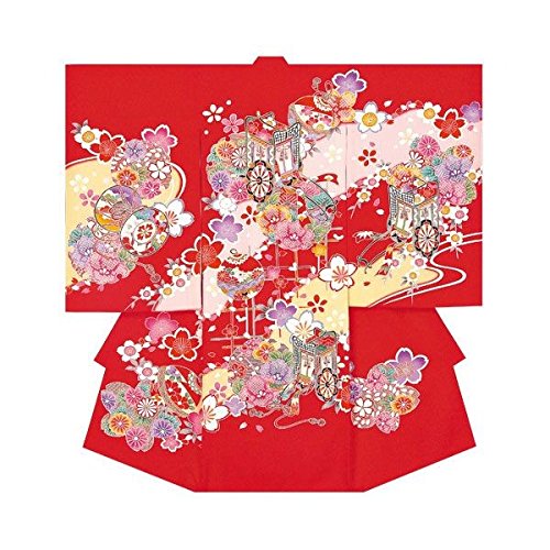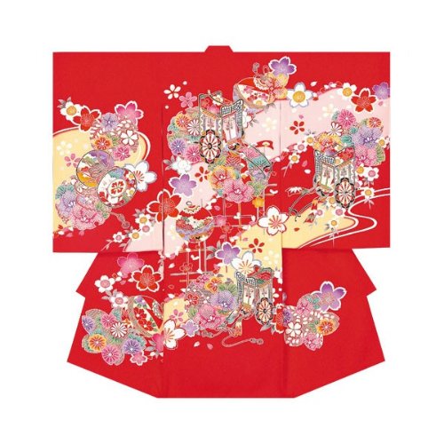 産着 初着 祝い着 女の子 着物 /B26赤・御所車新駒刺繍