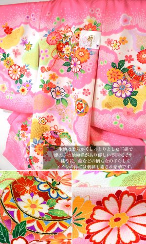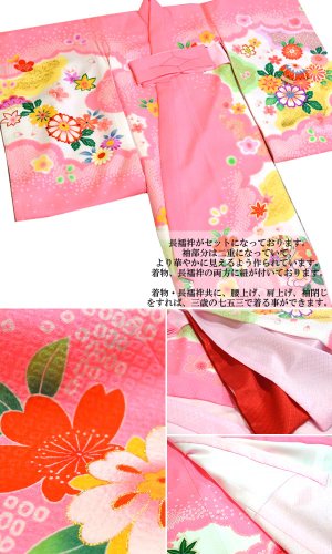 着物・長襦袢共に、腰上げ、肩上げ、袖閉じをすれば、三歳の七五三で着る事ができます。
