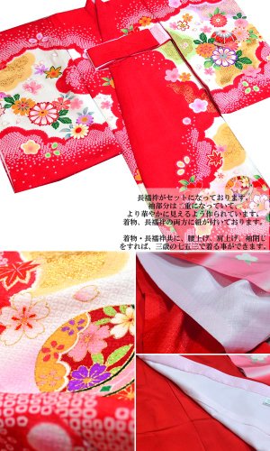 着物・長襦袢共に、腰上げ、肩上げ、袖閉じをすれば、三歳の七五三で着る事ができます。