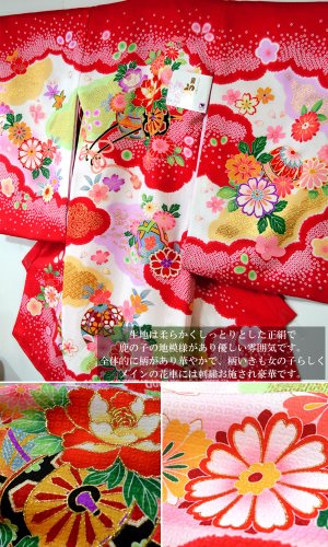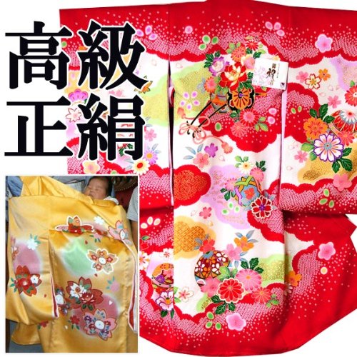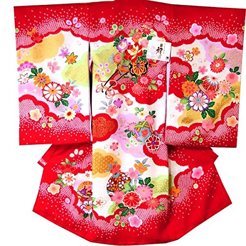 産着 初着 祝い着 女の子 着物/B78赤・花車