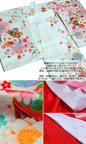 着物・長襦袢共に、腰上げ、肩上げ、袖閉じをすれば、三歳の七五三で着る事ができます。