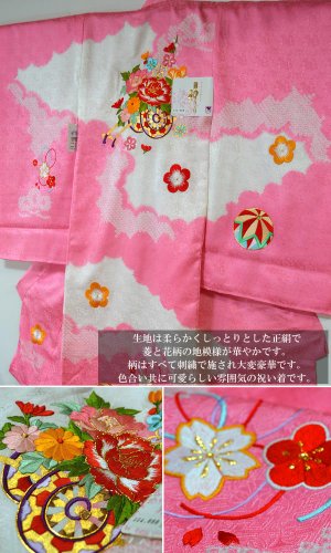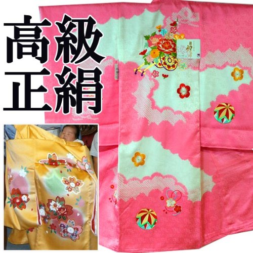 産着 初着 祝い着 女の子 着物 /S52ピンク・花車