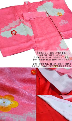 着物・長襦袢共に、腰上げ、肩上げ、袖閉じをすれば、三歳の七五三で着る事ができます。