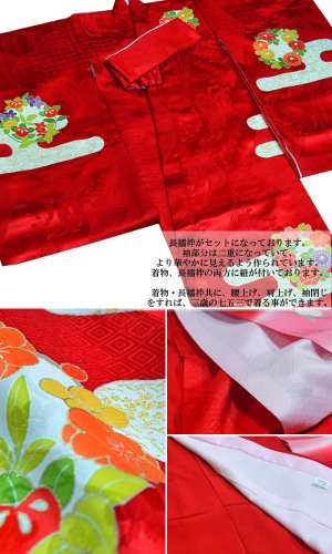 着物・長襦袢共に、腰上げ、肩上げ、袖閉じをすれば、三歳の七五三で着る事ができます。