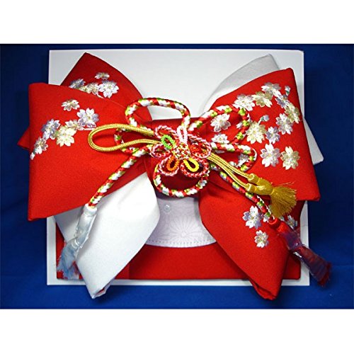 七五三 正絹刺繍結び帯 3サイズ6色/S(3歳用) 赤