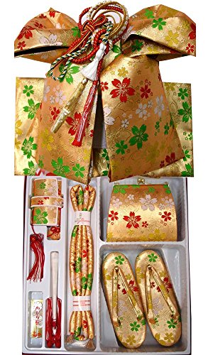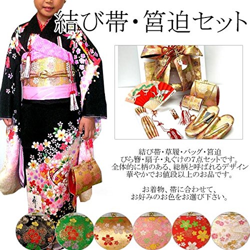 - ◆内容: 結び帯・草履・バッグ・はこせこ・丸ぐけ・扇子・びらかんざし・特製ケース付 (結び帯の飾り紐は画像の色と変わる場合がございます)