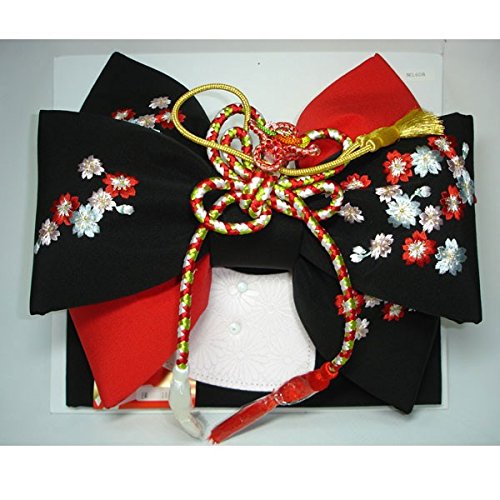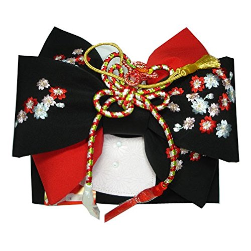 七五三 正絹刺繍結び帯 3サイズ6色/L(7歳用) 黒
