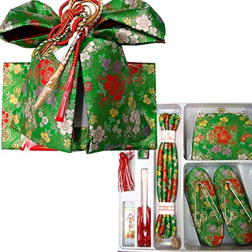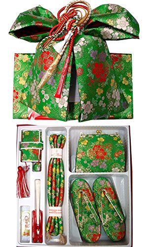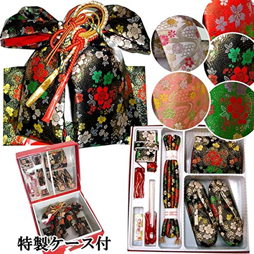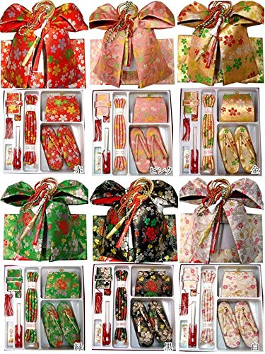 - ◆内容: 結び帯・草履・バッグ・はこせこ・丸ぐけ・扇子・びらかんざし・特製ケース付 (結び帯の飾り紐は画像の色と変わる場合がございます)