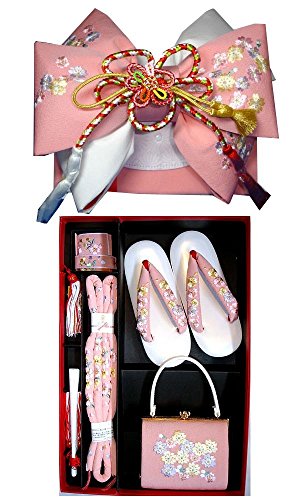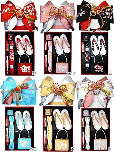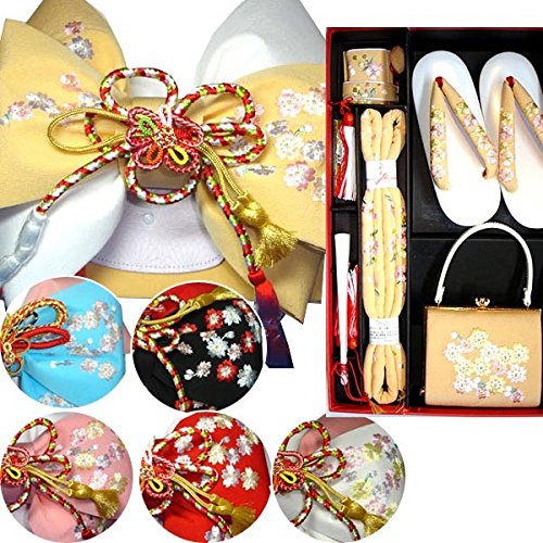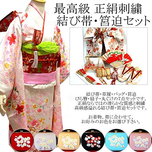 - ◆内容: 結び帯・草履・バッグ・はこせこ・丸ぐけ・扇子・びらかんざし (結び帯の飾り紐は画像の色と変わる場合がございます)