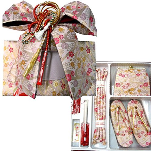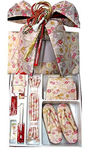 - ◆内容: 結び帯・草履・バッグ・はこせこ・丸ぐけ・扇子・びらかんざし・特製ケース付 (結び帯の飾り紐は画像の色と変わる場合がございます)