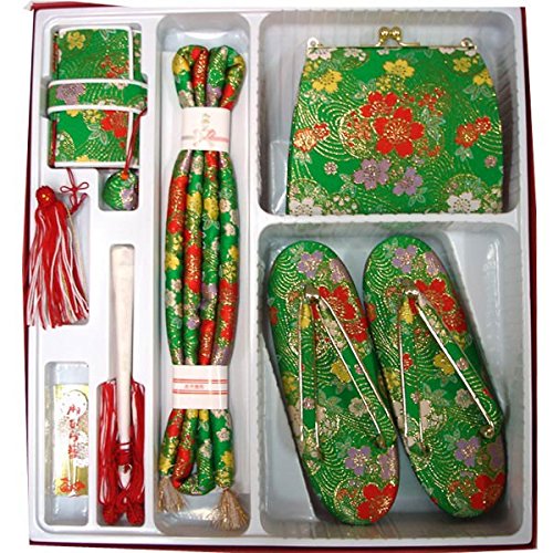 七五三 総柄はこせこセット 3サイズ6色/L(7歳用21cm) 緑