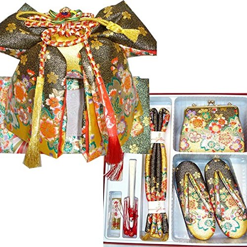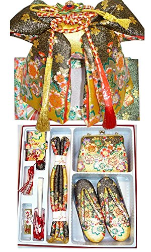 - ◆内容: 結び帯・草履・バッグ・はこせこ・丸ぐけ・扇子・びらかんざし・特製ケース付 (結び帯の飾り紐は画像の色と変わる場合がございます) (結びやたれの部分等の柄は帯地の出かたにより画像と多少変わる場合がございます)